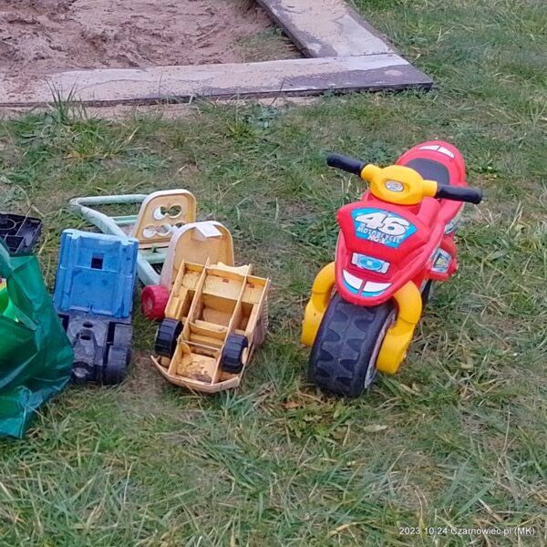 Dzieci po jakimś czasie nudzą się swoimi foremkami, samochodzikami i lalkami. Ale gdy zobaczą coś „nowego” natychmiast chcą się tym bawić. Dlatego nie wyrzucajmy zabawek tylko przynieśmy na plac przy świetlicy.
