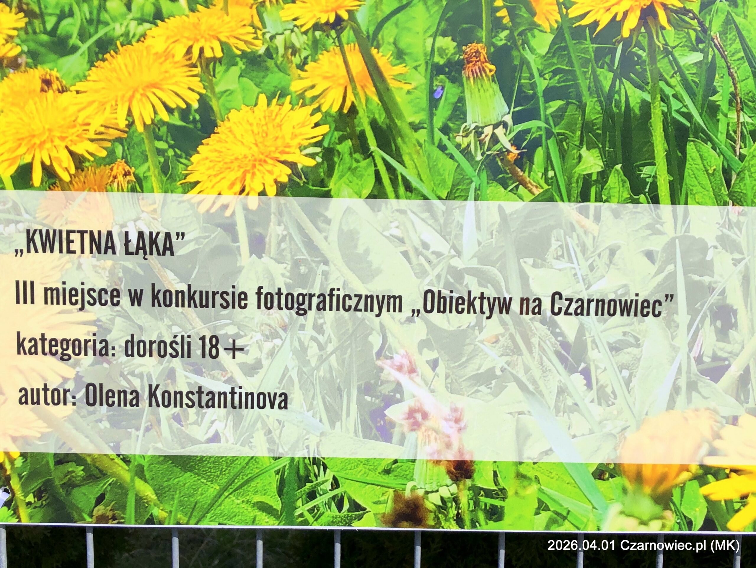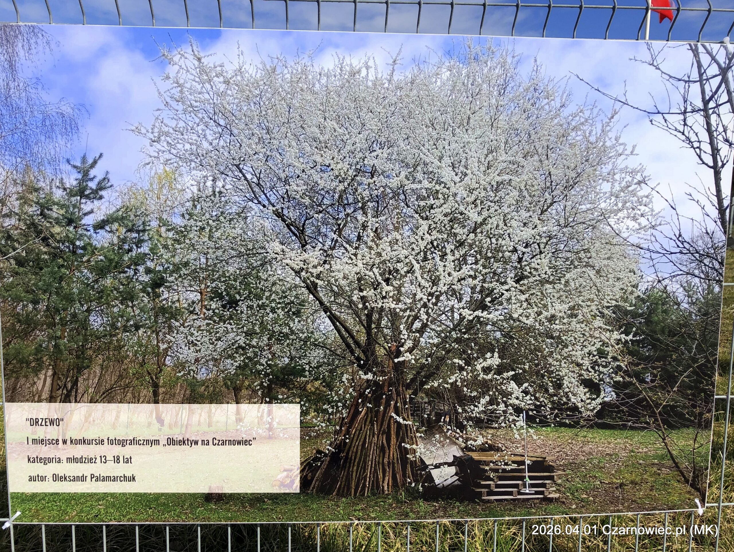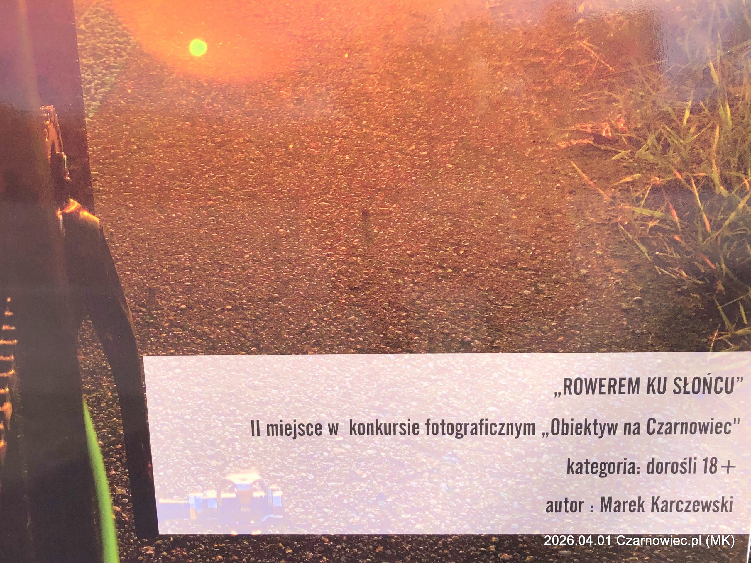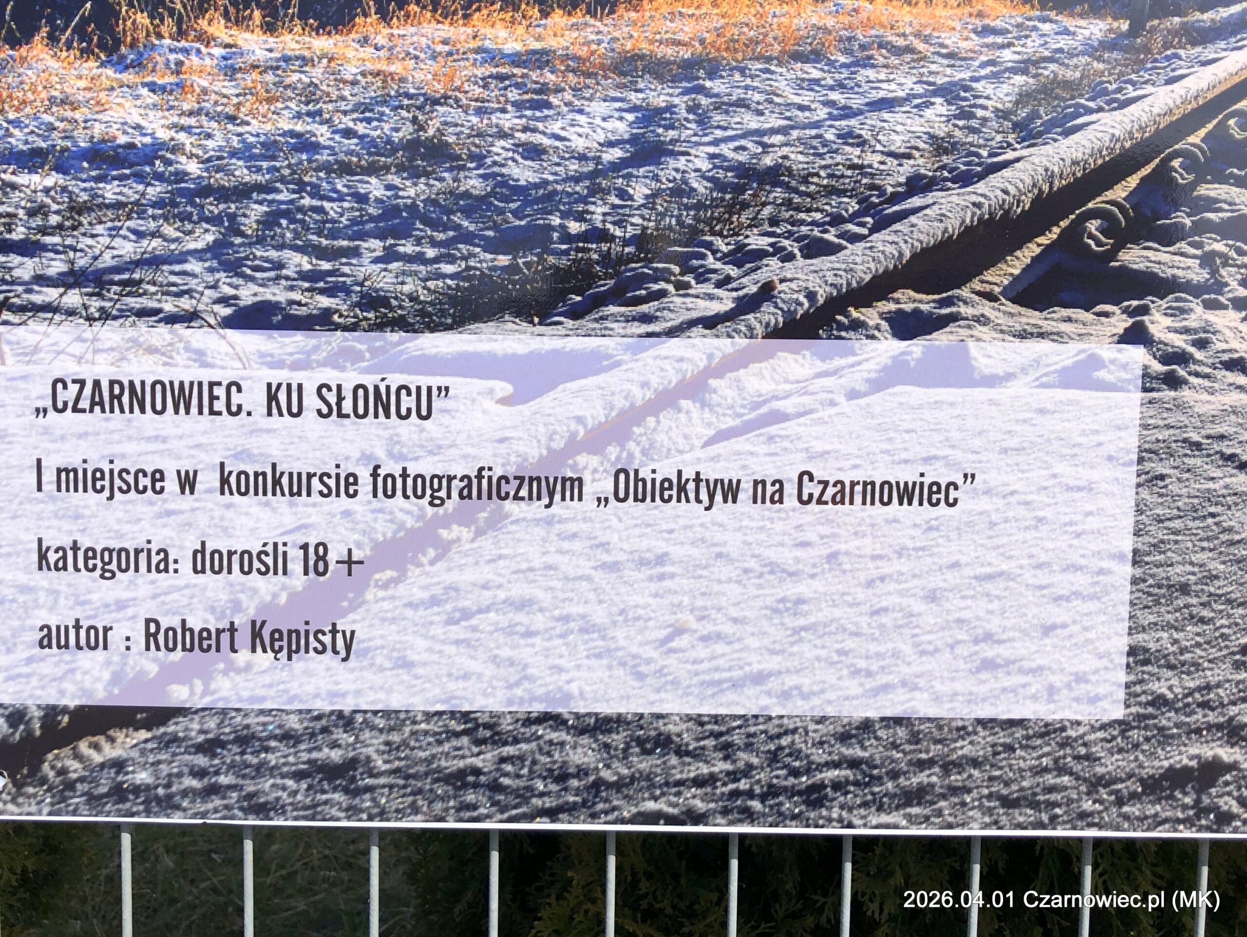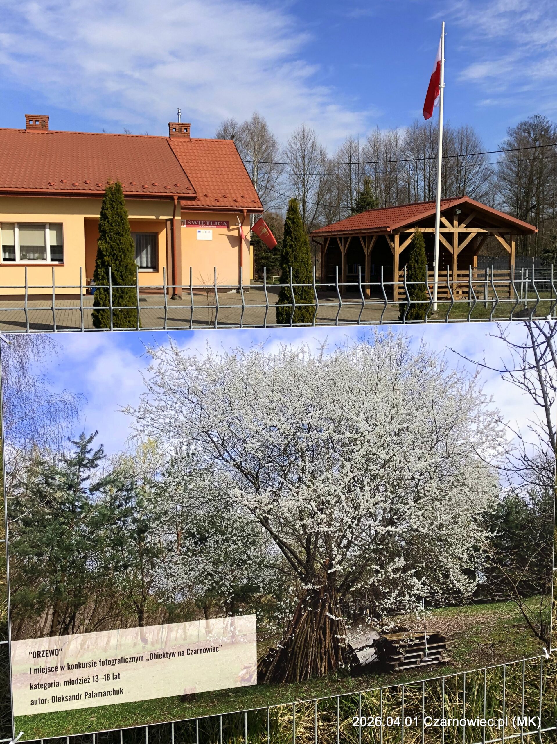 Pierwszego kwietnia 2026 roku (i to nie jako prima aprilis) Pani dyrektor Gminnej Biblioteki Publicznej w Rzekuniu – Organizatorka konkursu, wraz z pracownikiem Biblioteki zawiesili cztery zdjęcia wielkogabarytowe na ogrodzeniu Świetlicy Wiejskiej w Czarnowcu przy ul. Dzikiej Róży 2. Zdjęcia zawisły od strony drogi powiatowej 2550W.