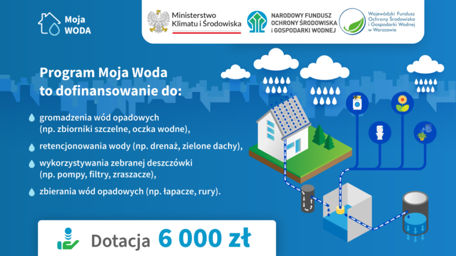 - 0,10 zł za 1 m² za każdy rok – gdy zastosowano urządzenia do retencjonowania wody o pojemności powyżej 30% odpływu rocznego.